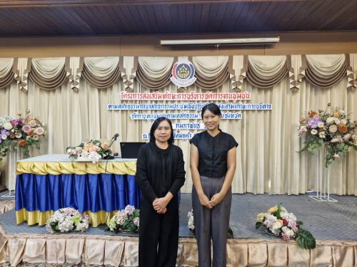 นางสินิทธิ์ ณ น่าน พัฒนาการอำเภอดอยหล่อ พร้อมด้วยนางศุภมาศ แจ่มศรี นักวิชาการพัฒนาชุมชนชำนาญการ ร่วมกิจกรรม “ประชุมเชิงปฏิบัติการส่งเสริมทักษะการบริหารจัดการทุนชุมชนตามหลักธรรมาภิบาล ระดับจังหวัด”